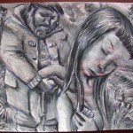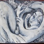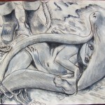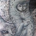 Lately I have found myself obsessively drawing the Selkie, repeatedly trying to find the soul behind the tale with a similar frustration that I haven’t yet found a definitive way to depict such a large subject. I feel that I am only paddling in the shallows, the deeper I go into it… but of course I shall have to keep trying to find a face and a form that could do the story justice.